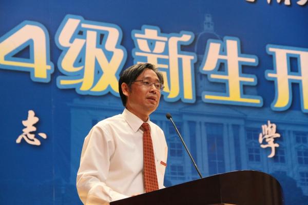 随后,东方语学院院长程彤教授代表全校教师表达了对新生的诚挚欢迎。他特别指出上外在持续加大国际化办学力度的背景下迎来了2014级新生,同学们将获得更为丰富的教育资源和教育机会,为学生施展才能打下坚实的基础。他希望,同学们可以以“格高志远、学贯中外”的校训为指引,以青春岁月换得良好的品德、丰富的知识,在大学中获得真挚的友情和健康的体魄,让上外成为同学们内心深处的精神家园,而老师们会为这个家园的建设付出自己最大的努力。