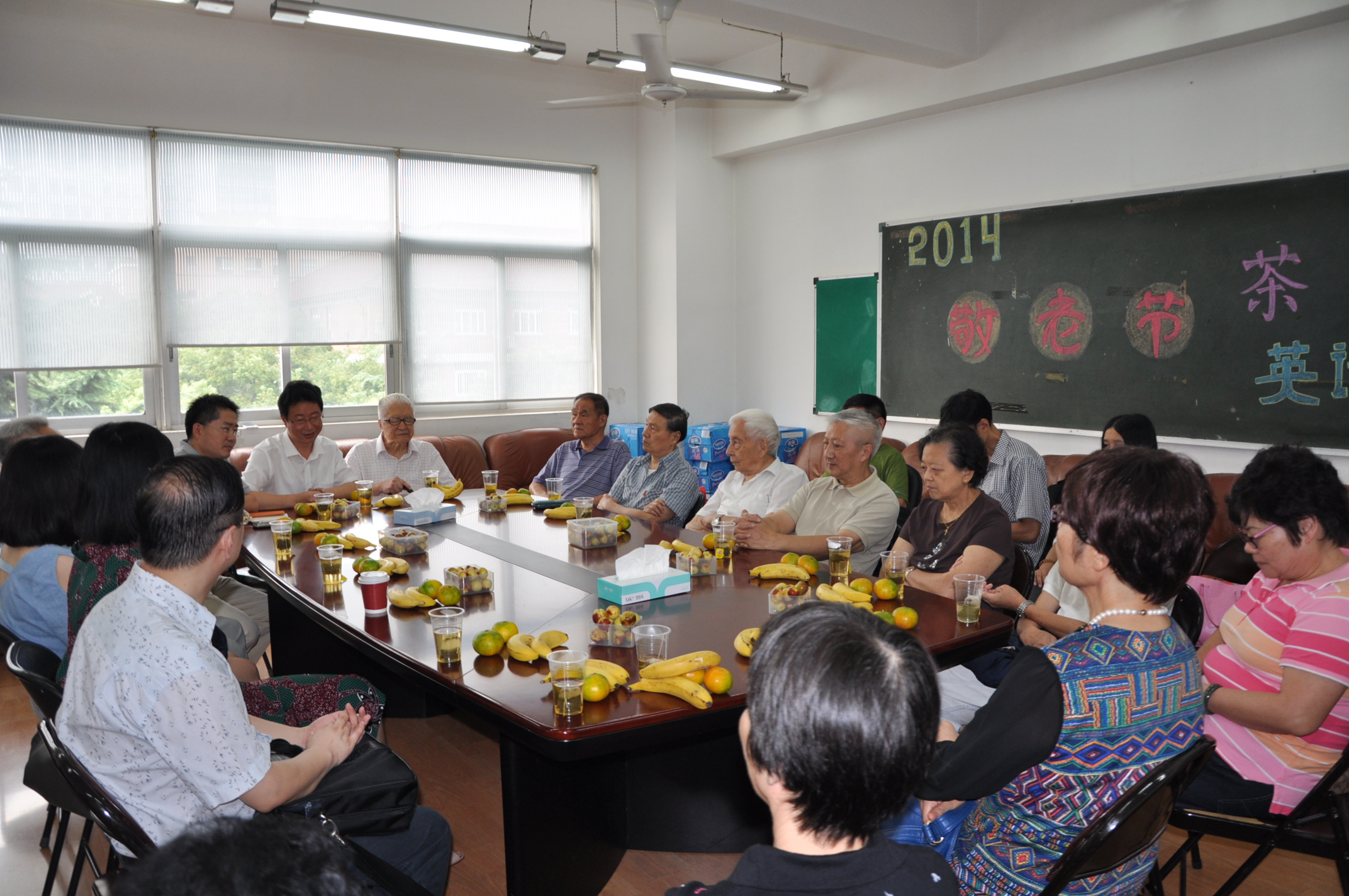 菊花黄,桂花香。作为英语学院迎接学校65周年校庆系列活动之一,在九九重阳到来之际,学院精心为退休老教师们安排了一场敬老节茶话聚会。9月29日上午,章振邦、杨小石、何兆熊、章伟良、吴定柏等二十五位退休的老教师们在虹口学校英语学院会议室内欢聚一堂。英语学院院长查明建、党总支书记孙俭,以及多名青年教师代表、学生代表也参加了这次茶话会。