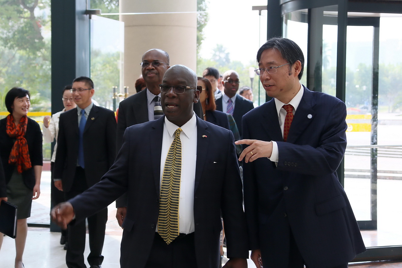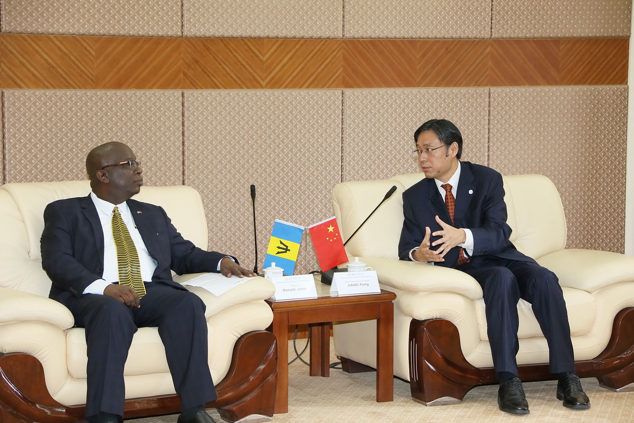 10月11日上午,巴巴多斯教育、科技和创新部部长罗纳德·琼斯(Ronald Jones)阁下在巴巴多斯驻华大使等陪同下驱车来到上海外国语大学松江校区,受到校党委书记姜锋的热烈欢迎。