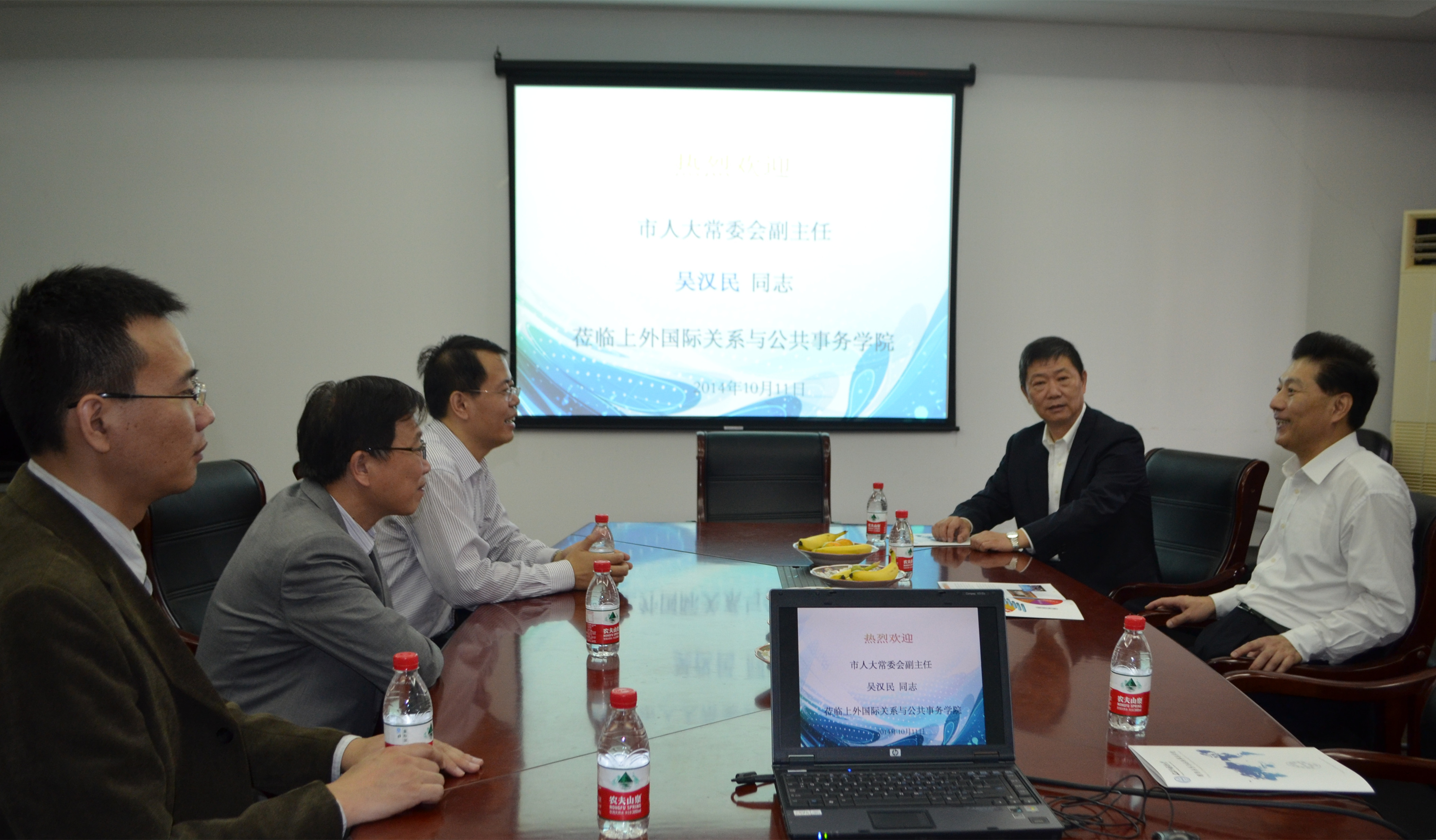 10月11日,上海市人大常委会副主任吴汉民一行到上海外国语大学国际关系与公共事务学院调研。校党委副书记李月松教授、国际关系与公共事务学院院长郭树勇教授、总支书记房叶臣等陪同。
