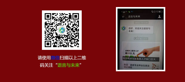 9月初,由语言研究院-中国外语战略研究中心创办的自媒体微信平台“语言与未来”正式推出,该平台秉持科研致用、服务国家和社会的宗旨,为读者提供语言研究、语言政策、语言舆情、语言知识等资讯,每个工作日均有新信息发布。支持该平台的是中国外语战略研究中心的专兼职研究员及多语种新闻团队,微信内容丰富、视野开阔,目前已得到上百人关注,正在成为传播语言学知识、聚拢人才、提升我校在语言学领域影响力的自媒体平台。