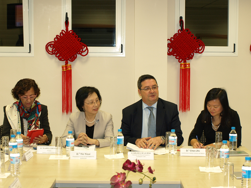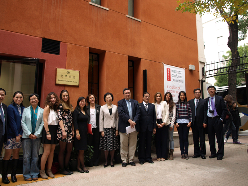 10月8日,上海市人大常委会主任殷一璀在访问欧洲期间专程赴上海外国语大学与马德里自治大学合办的西班牙马德里孔子学院考察访问,中国驻西班牙大使馆教育组负责人纪彩玲、马德里自治大学副校长、马德里孔院中外方院长陪同参观。