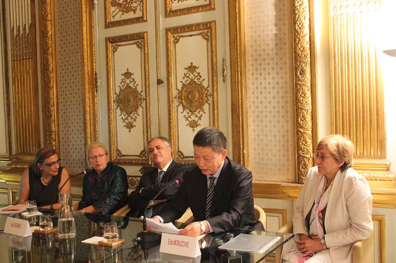 许琳主任发言说,那不勒斯是一座有着悠久汉学研究传统的城市,300多年前,传教士马国贤神父就已经正式开办了专门培养中国留学生的“中国学院”(即现那不勒斯东方大学前身),在中意乃至中欧文化交流中都起到了重要作用。我们也要继承和发扬马国贤神父这种不畏艰难,献身于文化交流事业的精神。我们很高兴的看到,那不勒斯东方大学和上海外国语大学双方的合作非常融洽,也希望那不勒斯孔子学院能再接再厉,不断创造新的成绩做出新的贡献。