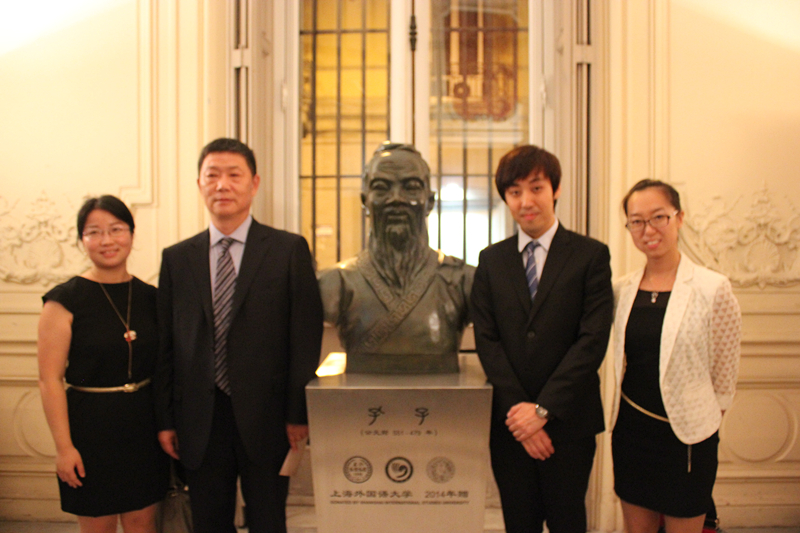 许琳主任、LidaViganoni教授和李月松教授还一起为上海外国语大学赠送给那不勒斯东方大学的孔子雕像揭幕。