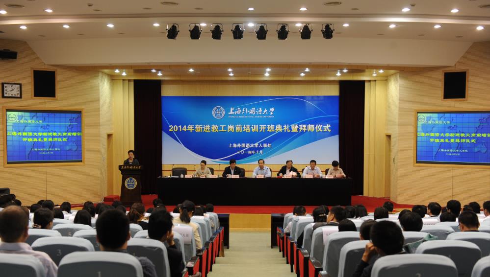 10月17日,上海外国语大学2014年新进教工岗前培训开班典礼暨拜师仪式在虹口校区会议中心第一报告厅举行。校长曹德明出席典礼,各有关职能部门、院系负责人、2014年新进教工及指导教师参加了典礼。典礼由人事处副处长吴慧主持。