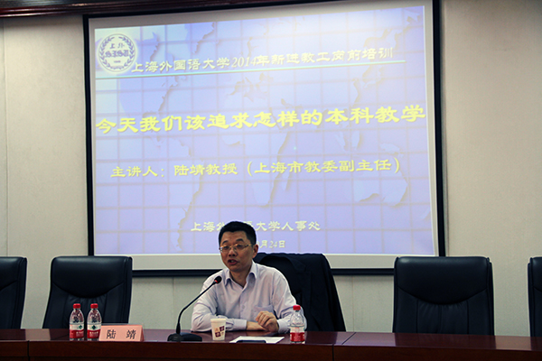 10月24日下午,上海市教委副主任、博士生导师陆靖教授应邀在虹口校区逸夫图书馆606报告厅为上海外国语大学2014年新进教工做了题为“我们应该追求怎样的本科教学”的专题报告。上外新进教工、部分校青年教师、教学科研培育团队的团队核心及成员聆听了报告。