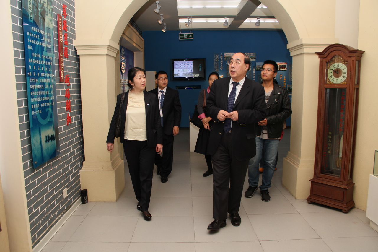 吴红波先后参观了校史馆、ERP(企业资源计划)实验室、金融贸易与会计实训实验室,并观看了教学实验演示,详细了解了上外的历史承传、专业建设、招生录取、学生培养、获奖成果等情况。在参观国际工商管理学院学生自主创业的“悠哉(yourside)咖吧”时,他饶有兴趣地询问了大学生创新创业项目的情况。