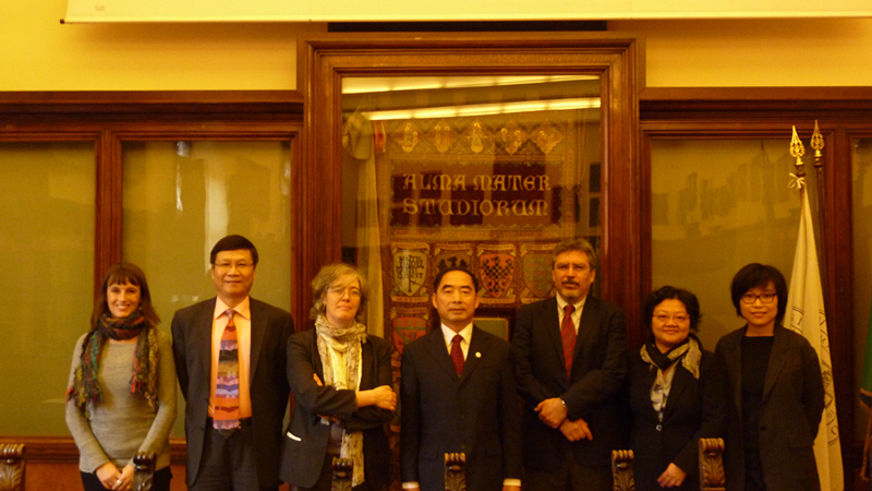 在完成了欧洲议会的会议和访问任务后,冯副校长一行又马不停蹄应邀访问意大利博洛尼亚大学。作为世界上最古老的大学(成立于1088年),博洛尼亚大学是世界上最早诞生大学分类学科的大学,其医学院和法学院在公元9世纪发展就已经很成熟。随着中国在世界上影响越来越大,近年来中国学生也开始了解并进入博洛尼亚大学学习。该大学翻译学院也是国际高校翻译学院联合会(CUITI)成员,其两位教授在2013年来上外参加CIUTI全会期间对高翻在会议口译人才培养方面取得的成就留下深刻的印象,一直希望邀请上外校领导和高翻学院领导到访并签署合作备忘录。冯副校长一行此次访问先行签署了学院层面上的合作,并相约在适当时候签署大学之间的合作,丰富其他学院和学科点之间的合作内容,进一步落实学校国际化办学的战略计划。