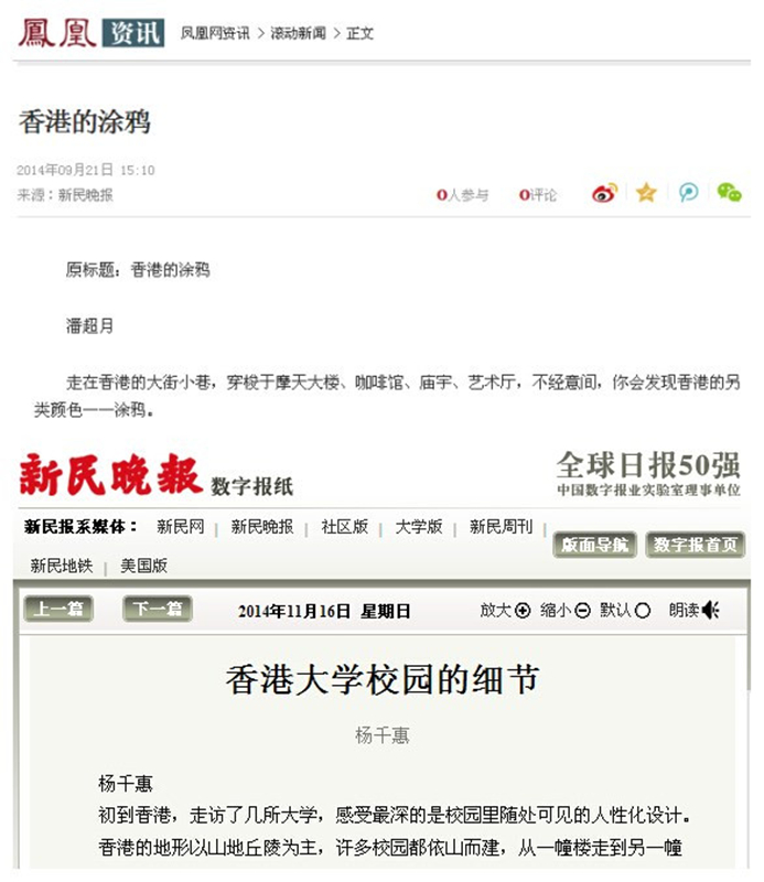作品亮相沪港媒体。从7月9日到15日,在短短7天采访中,背包记者们日夜奔忙,取得累累硕果。截至目前,背包记者团的成果已登上《新民晚报》、凤凰网、《解放日报》网站、网易、和讯网、上海教育新闻网等媒体,并由《新传快递》特刊出版。背包记者团还综合运用人人网、新浪微博、微信公共平台、腾讯微博全程直播采访进程,创作出了《生活在永远是别人的土地上》、《香港大学校园的细节》、Phoenix in New Era等大量中英文深度报道、消息、视频及微信微博作品。