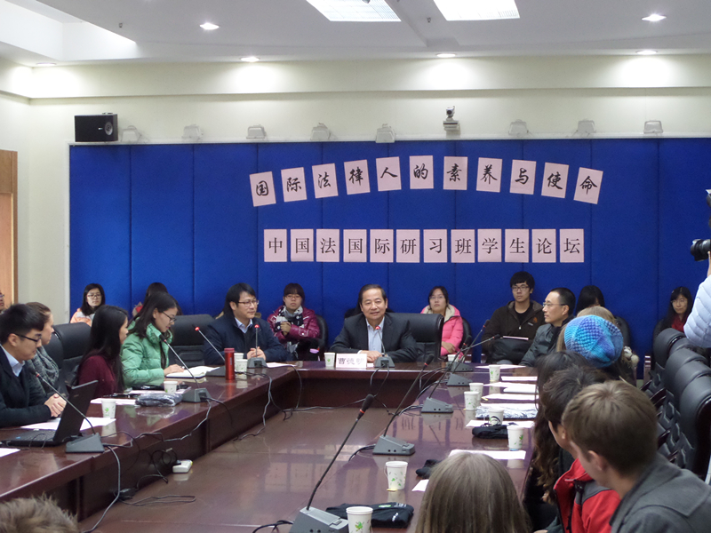 在随后的论坛环节,中国法国际研习班学员与法学院学生代表在专业导师的主持下围绕“国际法律人的素养与使命”这一主题展开了互动交流。中外学生踊跃发言,就国际法律人所应具备的专业素养及其在当今世界形势下所应承担的使命,以及中外法律制度及其司法实践、法律教育、法律学习方法等论题各抒己见,论坛气氛热烈而融洽。