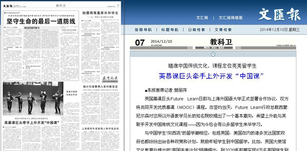 英国慕课巨头Future Learn日前与上海外国语大学正式签署合作协议,双方将共同开发优质慕课(MOOC)课程。在签约当天,Future Learn行政总裁西蒙·尼尔森对这所以外语教学见长的知名院校提出了一个基本意向:希望上外能与其联手开发中国传统文化课程——因为今后会有众多留学生来华学习。