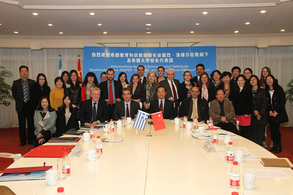 随同来访的希腊贵宾还包括希腊教育部秘书长、高教司司长、希腊驻华大使、希腊驻沪总领事等。会谈在座的还有中国教育部国际司欧洲处和上海市教委国际交流处代表,我校对外合作交流处处长张红玲、国际文化交流学院院长张艳莉、西方语系总支书记王岩以及希腊语专业师生和希腊留学生代表等。