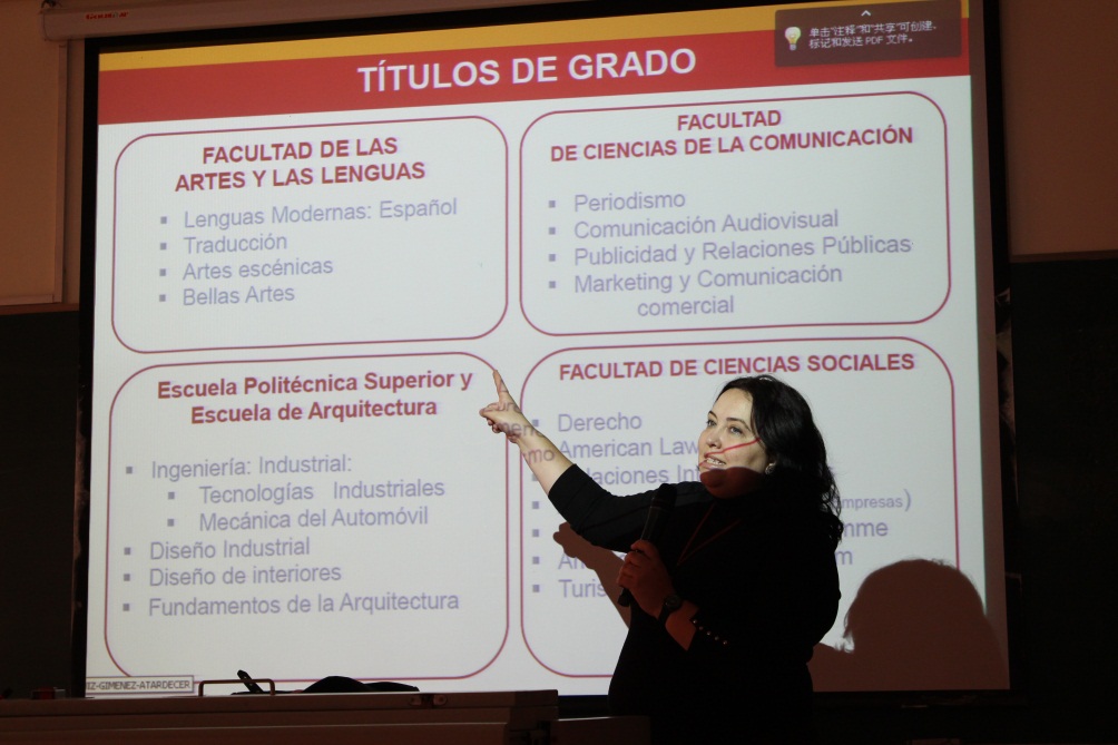 12月4日下午,西班牙内布里哈大学国际项目负责人Tamara Rodil Cuadrado女士以及该校西语教学中心负责人Pilar Alcover Santos女士一行来访我校西方语系,与我校西班牙语专业师生进行了交流和互动。