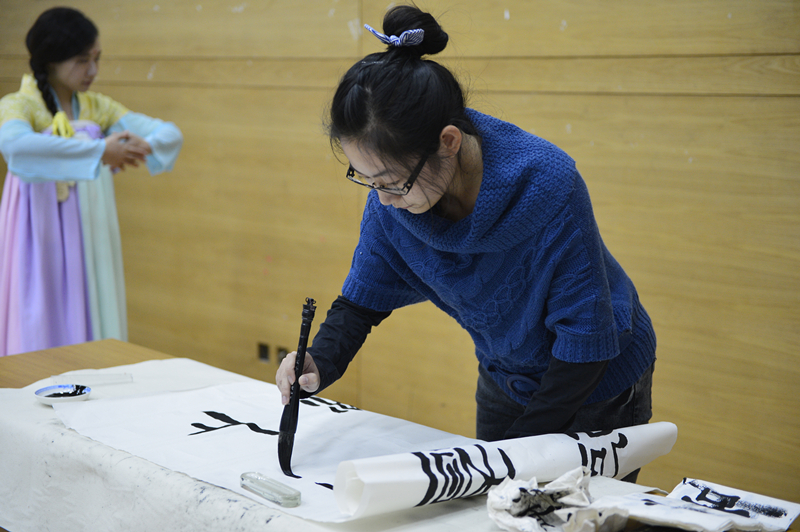 近期,为了深化中外学生跨文化交流和沟通,法学院涉外卓越法律人才实验班学生精心组织了一场主题为“厚德载物”的中外学生文化交流活动。法学院学生展示了承载中国五千年灿烂文明的琴棋书画等艺术形式,并以过硬的外语能力和文化领悟力演绎了西方经典歌剧的精彩片段。中国法国际研习班的学生演唱了新学会的中国民歌、表演了中国武术中的洪拳。学生用中国民族舞和现场书法共同诠释了“上善若水、厚德载物”的中国智慧,水善利万物而不争,唯厚德者能担重任,体现国际法律人的素养与使命。