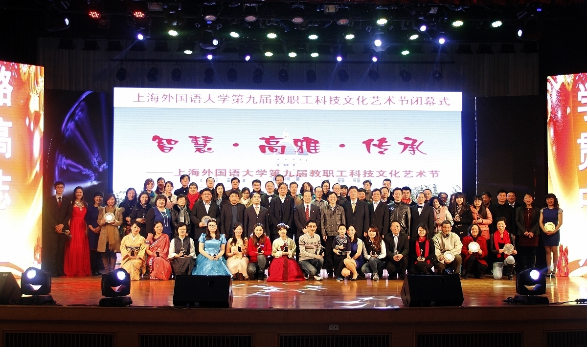 12月19日下午,“上外之声•世界之音”——上外教职工外语歌曲演唱会暨第九届教职工科技文化艺术节闭幕式在虹口校区逸夫会堂举行,上海市教育工会副主席吉启华、宣教文体部部长沈瑶、校党委书记姜锋、校长曹德明、校党委副书记、校工会主席李月松、副校长冯庆华、张峰、周承以及校工会、机关部处及院系领导、教职工及学生代表等近高端学者出席,共同见证以“智慧·高雅·传承”为主题的上外第九届教职工科技文化艺术节圆满落幕。