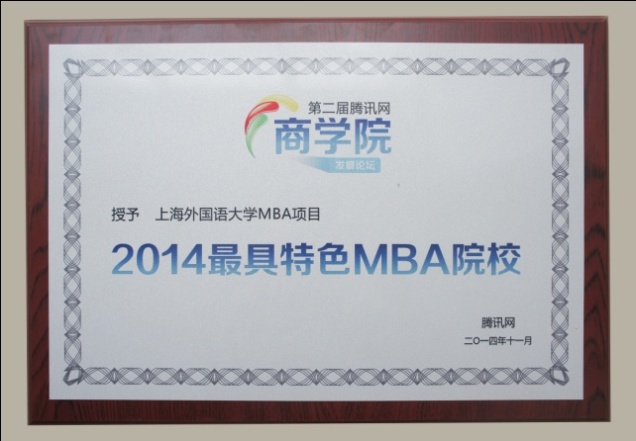 近日,上海外国语大学MBA项目(以下简称“上外MBA项目”)获多项奖项。凭借培养源自于东方的新一代复合型“无国界管理”MBA人才的创新理念、国际化的师资队伍、前沿的专业方向设计、全方位的就业服务以及雄厚的硬件实力,上外MBA项目得到了社会各界的一致认可,荣获 “新浪2014中国教育盛典”颁发的“2014最具品牌影响力MBA院校”、“第二届腾讯网商学院发展论坛”颁发的“2014最具特色MBA院校”、“网易2014教育大选活动”颁发的“金翼奖2014年度最具影响力商学院”等多个奖项。