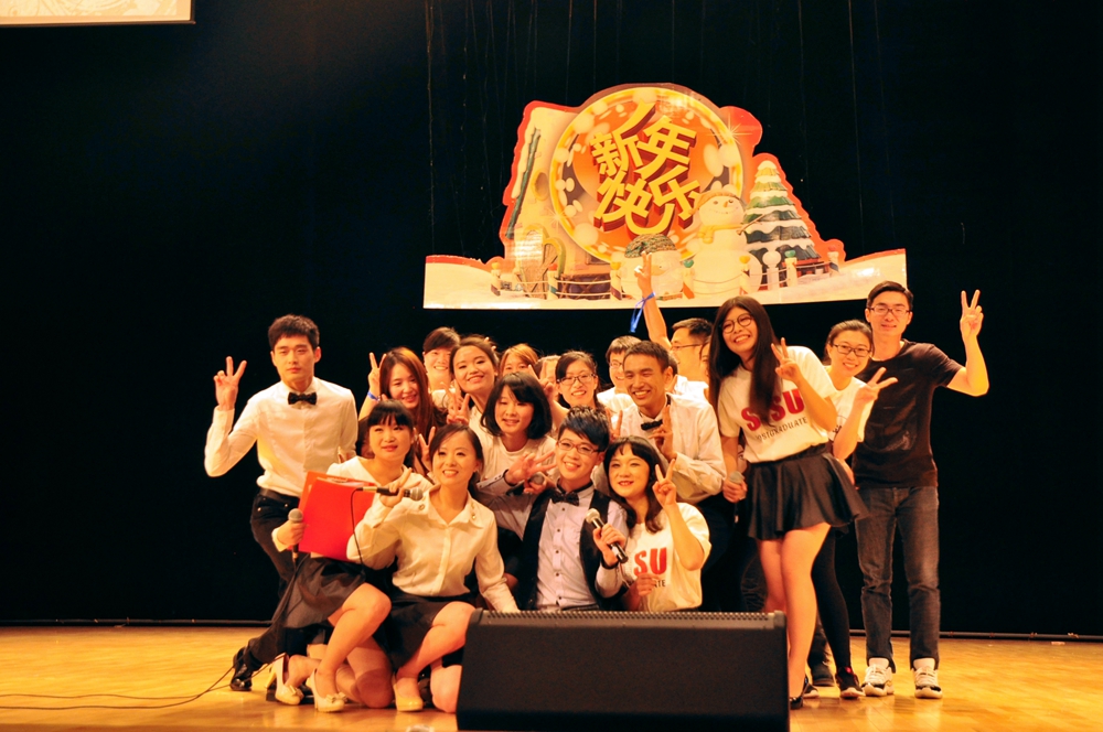由研究生部和学生处的老师们共同带来的舞蹈《小苹果》将晚会推向了高潮,身穿印有“SISU”字样红色卫衣的老师们用轻快的舞步,灿烂的笑容演绎不一样的青春,现场欢呼声此起彼伏。