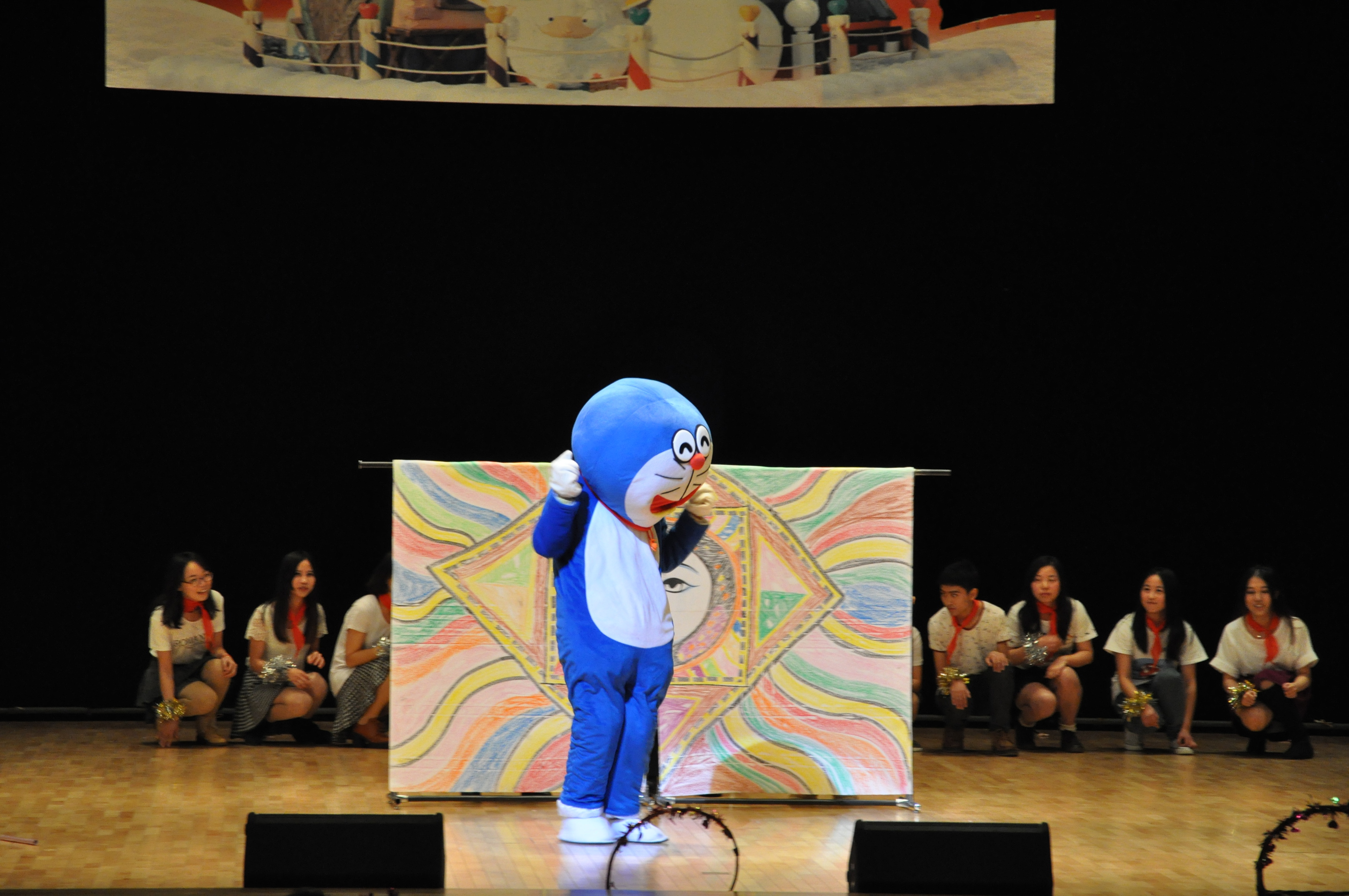 2014级日语语言文学专业研究生带来的歌舞串烧《再见小时候》,多啦A梦真人秀回忆童年的情节引爆全场,匆匆那年的难忘回忆,那时青涩的脚印已然成为青春纪念册中最珍贵的一章。2014级4班英语语言文学专业同学的配乐双语诗朗诵《When You Are Old》在舒缓的钢琴伴奏中深情缓缓讲述光阴的故事,传递着不灭的青春故事与不朽的亲情与爱情。研会话剧社的话剧《改改改》讲述学生话剧社的选题与表演过程,节目内容源自生活,语言诙谐幽默,表演生动,成为本次晚会语言类节目的一大亮点。