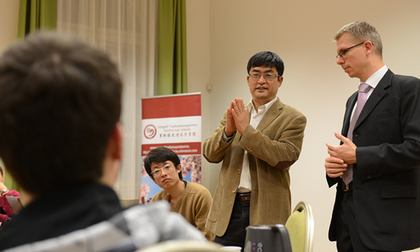 匈牙利赛格德大学孔子学院中方院长曹航在简短的开场白之后,回答了市民们有关“匈牙利人的源头”、“中国与匈牙利的历史渊源”、“匈牙利的文学和音乐艺术”、“郑和远洋”、“丝绸之路”、 “中国语言与文字的特点”、“语言中的外来语”、“中医的科学性”、“文化的冲突”、“中医与西医的关系”和有关“孔院工作的目的和特点”等问题。