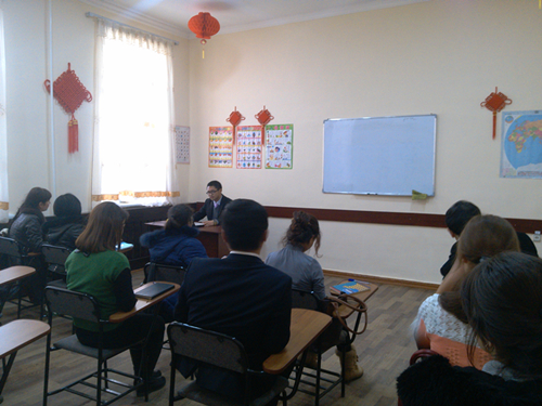 撒马尔罕孔子学院于2015年1月7日正式开课,同时开设两个初级汉语班,分别由中方院长刘涛和孔院教师彭鑫葛授课。这些学习者主要是撒马尔罕外国语学院的大学生,也有几个来自其他高校的大学生,还有社会人士。