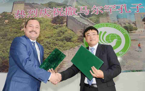 撒马尔罕孔子学院是上外与乌兹别克斯坦撒马尔罕国立外国语学院合建的,于2014年11月27日正式揭牌。上外副校长周承参加了揭牌仪式,并在揭牌仪式上与撒外校长拉西莫夫交换了两校合作协议。