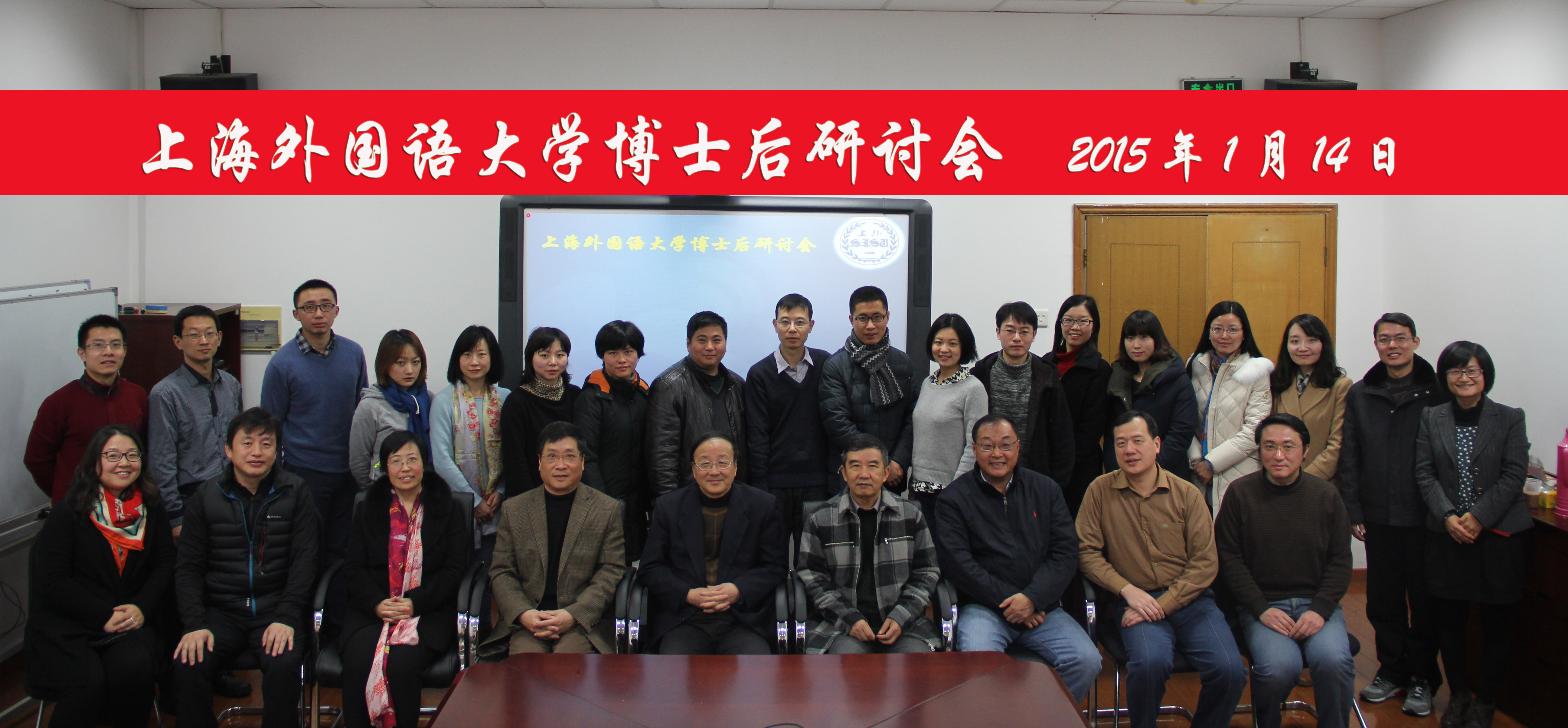 2015年1月14日上午8时30分,上海外国语大学博士后研讨会在上外虹口校区图书馆举行。研讨会由上海外国语大学博士后管理办公室主办,校人事处副处长梁薇主持,博士后导师郑新民教授、虞建华教授以及汪波教授做了专题讲座,参与者包括外国语言文学博士后科研流动站及政治学博士后科研流动站在站博士后研究人员,共21人。