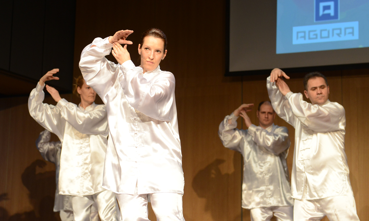 此次迎春文化活动以何敏老师的一曲匈牙利民歌《春风》拉开序幕。来自布达佩斯的华人书法家张伟先生为匈牙利民众表演了中国书法。随后,学书法、踢毽子、中国风光图片和影像展、做饺子、体验中国传统婚姻服饰、学习用筷子、学说中国话等活动全面铺开,各摊位前人头攒动。作为受邀贵宾,匈牙利匈中友好协会的武术队为观众表演了集体太极拳套式和中国剑术等精彩节目。