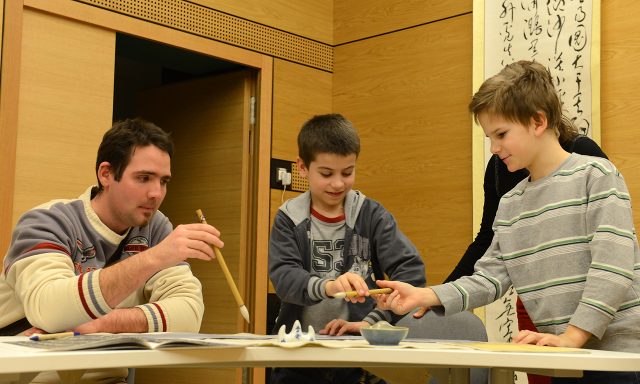 (图片二:老外学书法,Chinese Calligraphy)