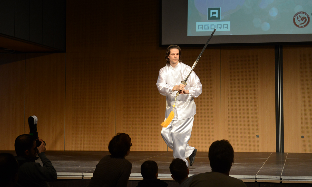 The activity was initiated with the Soprano“Spring Breeze”by Chinese teacher He Min, followed with the Chinese Calligraphy Performance by Zhang Wei, a well-known Chinese calligrapher in Budapest, after which all the cultural events were brought to full display: Chinese Calligraphy, Shuttlecock Kicking, Beautiful City and Landscapes, Learning to Make Dumplings, Chinese Traditional Matrimony Costumes, Chopsticks Skills, Learning to Speak Chinese, etc.. As the guest performers, Hungarian Wushu masters from Hungarian-Chinese Friendship Association attracted the eyeballs of hundreds of Hungarian audience with their wonderful teamwork and individual performance of Tai Ji Quan and Chinese Swordsmanship.