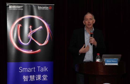 座谈会结束后,作为英国大使馆文化教育处经典项目“智慧课堂”的一部分,Simon Nelson在图文西厅与同学们分享了自己的工作背景及英国第一家MOOC平台FutureLearn的前世今生。Simon风趣生动地讲述了他在BBC工作期间进行的电视数字化改革,探讨了当前在线学习浪潮下的方向与见解以及对FutureLearn的未来规划和设想。(邵钰、胡盈滢整理)