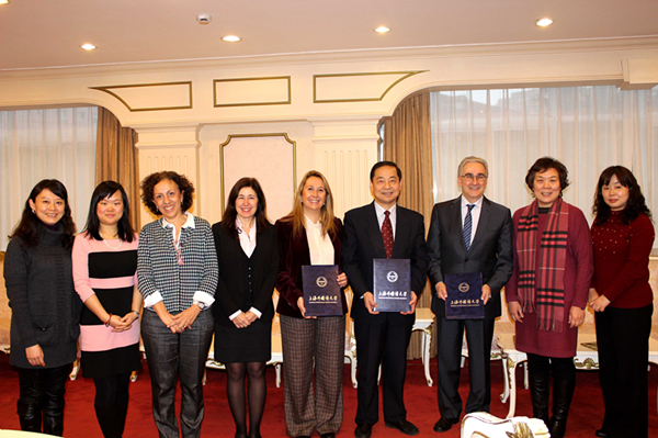 3月6日下午,西班牙马德里孔子学院第二届理事会在上海外国语大学虹口校区召开。上海外国语大学校长曹德明教授、孔子学院及国际汉语教育中心秘书长徐宝妹教授、张雪梅教授、孔子学院现任中方院长陈芷副教授及新任中方院长倪茂华副教授;马德里自治大学校长JOSE MARIA SANZ、马德里自治大学国际关系副校长AMAYA MENDIKOETXEA、亚洲之家(Casa Asia)秘书长MONTSERRAT RIBA、马德里孔子学院外方院长ISABEL CERVERA等出席会议。