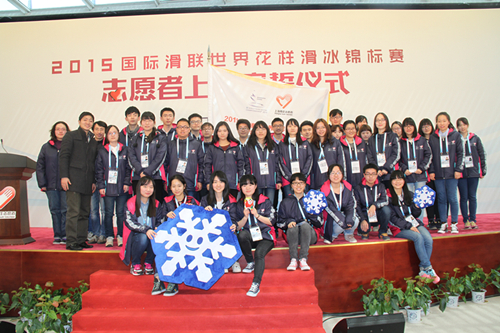3月17日上午,2015国际滑联世界花样滑冰锦标赛志愿者上岗宣誓仪式在东方体育中心隆重举行。我校40名“小冰花“志愿者与上海8所高校500多名志愿者共同参加上岗仪式,庄严宣誓将以高昂的斗志、“全力以赴,追求卓越”的工作状态,努力践行志愿者精神,用实际行动为祖国争光,为城市添彩。校团委副书记田昊罡带队参加了本次上岗仪式。