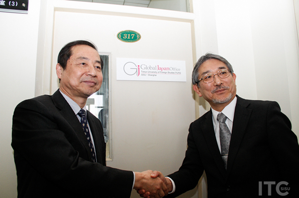 两校校长就今后发展两校战略合作关系达成一致,并续签了合作协议。会谈结束后,举行了东京外国语大学Global Japan Office 揭牌仪式。曹德明首先致辞,祝贺东京外大在上外设立办公室,希望以此为平台加强两校间的联系和交流。随后,立石校长为日本文化经济学院师生作了精彩演讲,分享了他对于文化交流和心灵沟通中外语的独特作用的了解和感受。