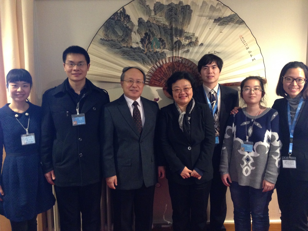 联合国日内瓦办事处一如既往地高度重视此次会口学生实习,并予以大力协助。口译处处长李正仁先生自今年元月起就开始协调安排本次实习事宜,学生在日内瓦期间,他亲自颁发了实习证书,回顾并高度评价了与上外高翻学院师生的深厚友谊与密切合作。中文科科长吴军先生在去波恩出差前,特意赶赴学生实习的万国宫20号会议厅口译箱作了具体安排,并委托教授级资深译员冯小兰老师全程指导。此外,资深译员王慧云老师、冯京葆老师、吴杰老师及黄迅余老师均在繁忙工作之余,特地抽出时间辅导学生,点评学生表现,并针对每一位学生的特点给出了详细建议。