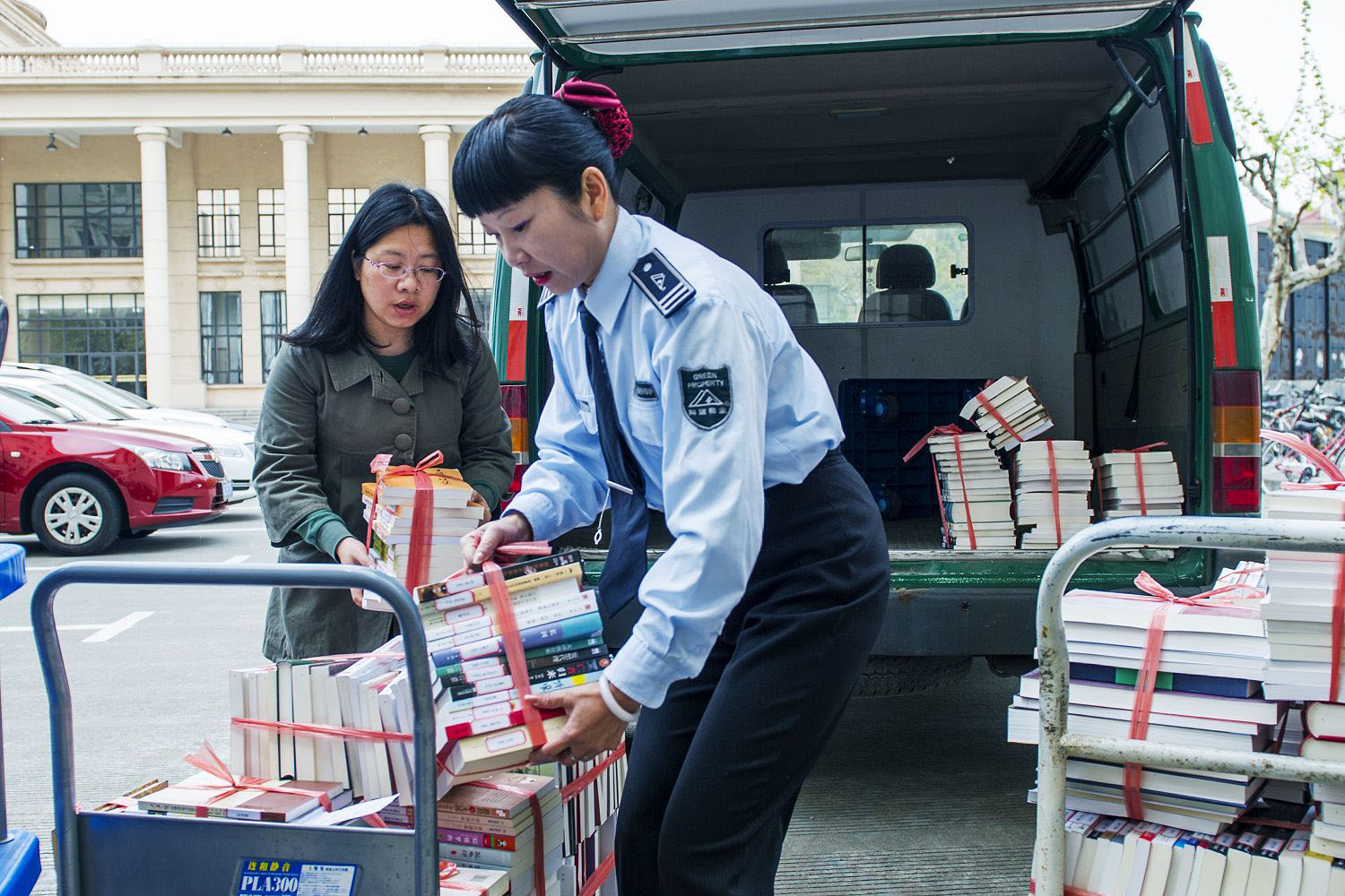 吴阿姨是松江校区众多安保中的一名。每周三上午,在虹口校区经过编目后的新书会运送到松江校区,再经工作人员整理后上架。帮助推车并非吴阿姨的本职工作,但她总是热心地伸出援手。工作时间长了,不少女生渐渐和吴阿姨稔熟起来,她成了图文楼的“知心姐姐”,几个考进外校读研的女生,至今和她保持着联系,逢年过节还会给她寄小礼物,吴阿姨已不仅仅是一名安保,她是校园里的一位亲人。