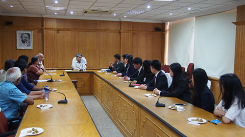 印度理工学院(Indian institute of technology,简称IIT),在学术界具有世界声誉,被称为印度“科学皇冠上的瑰宝”,是印度最顶尖的教育与研究机构。Bhaskar Ramamurthi校长代表印度理工学院对上海外国语大学师生的到访表示欢迎,并对郭树勇院长推进两校合作的努力表示感谢。郭树勇简要介绍了上外国关学院教育教学改革发展情况及高端涉外型人才的培养理念和举措,并希望以此次上外师生的出访为契机,拓展两校在中国学研究和“一带一路”区域研究等领域的合作,深入落实短期留学生交换项目和博士人才联合培养等项目的具体合作。印度理工大学拟与上海外国语大学建立密切的合作关系,推动双方学生的国际化培养。