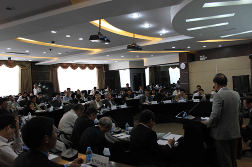 上海外国语大学中东研究所名誉所长朱威烈教授主持了开幕式,上海外国语大学杨力副校长和中国中东学会名誉会长杨福昌大使分别致辞。上外中东所刘中民教授在随后的《中东地区发展报告(2014年卷)》发布会上对该系列报告予以详细推介。朱威烈教授还主持了当天上午的主旨发言“中东形势与中国中东政策”,中国外交部前副部长杨福昌大使、中国中东事务特使宫小生大使、中国中东事务前特使吴思科大使、南京大学徐新教授、北京外国语大学张宏教授和上海社科院王健研究员分别就中国中东外交、中国参与中东热点问题、中阿战略合作、巴以冲突政策、“一带一路”与阿拉伯、中国中东关系等议题发表演讲。
