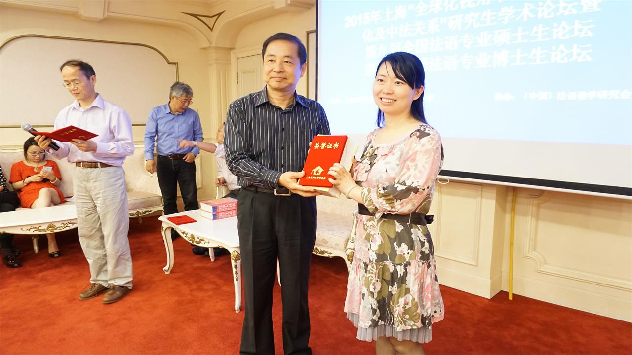 本次论坛共收到近30篇参赛论文,18篇论文入围,经过两天的研讨和论文交流、专家点评和评议,12名研究生分别获得一等、二等和三等奖(名单附后)。在闭幕式上,曹德明校长做了总结发言,他高度评价此次论坛获得的丰硕成果,并鼓励所有与会的硕士、博士研究生继续努力,在今后的学术道路上拓展视野,走得更远。上外法语系副主任陈伟教授和钱培鑫教授公布了获奖名单,曹德明校长和肖云上教授分别为博士、硕士获奖者颁发证书和奖品。
