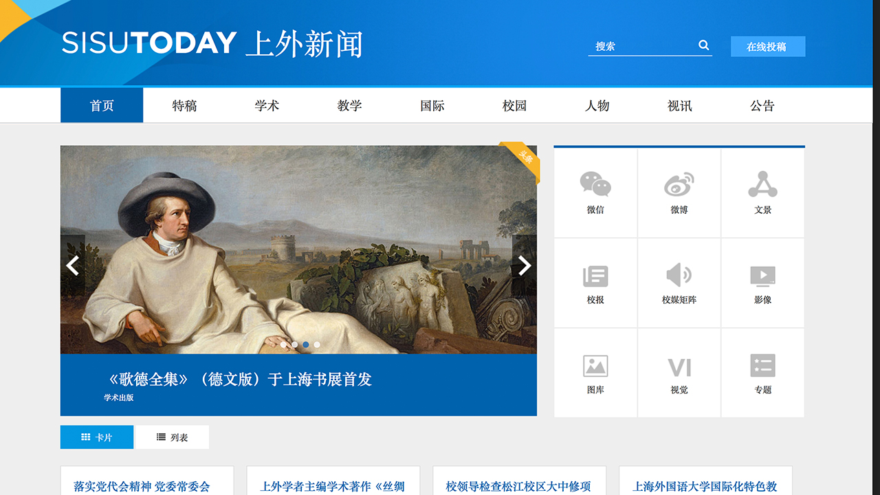 经过党委宣传部一年多的策划、设计、制作和测试,上外新版中文门户网站终于以全新的面貌呈现在各位网友面前。这种“新”不仅是页面感官上的创新,更是网站内涵、交互功能、阅读习惯和运营理念的综合提升。