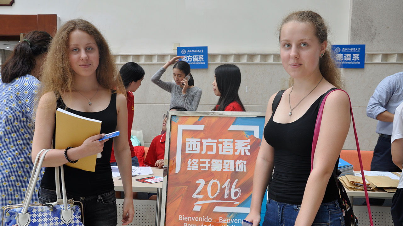 来自俄罗斯圣彼得堡的Sasha和Nastia是一对双胞胎,有趣的是,她们两个不分谁是姐姐和妹妹。两人在大连和秦皇岛总共学习了四年汉语之后,因为学习的兴趣和上外的知名度,她们今年报考了上外。最终,Sasha进入了德语系学习,而Nastia选择了西班牙语。