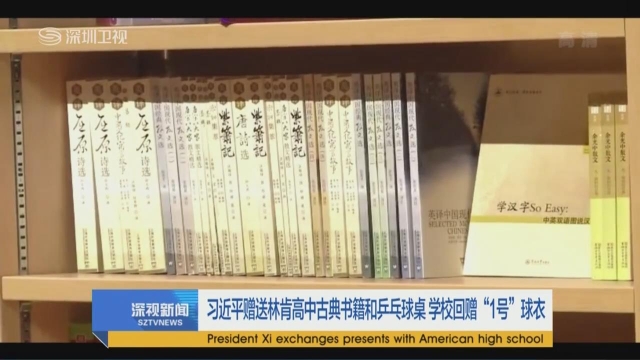 习主席向林肯中学赠送了乒乓球桌、球拍、乒乓球等体育器材和《红楼梦》等中国传统文化图书。上海外语教育出版社出版的《红楼梦(汉英对照)》(五卷本)《英译唐诗选》《英译宋词集萃》《英译唐宋八大家散文精选》《英译屈原诗选》《英译老子》《英译易经》《英译中国文化寓言故事》《英译中国现代散文选》《英译中国经典散文选》等赫列其中。