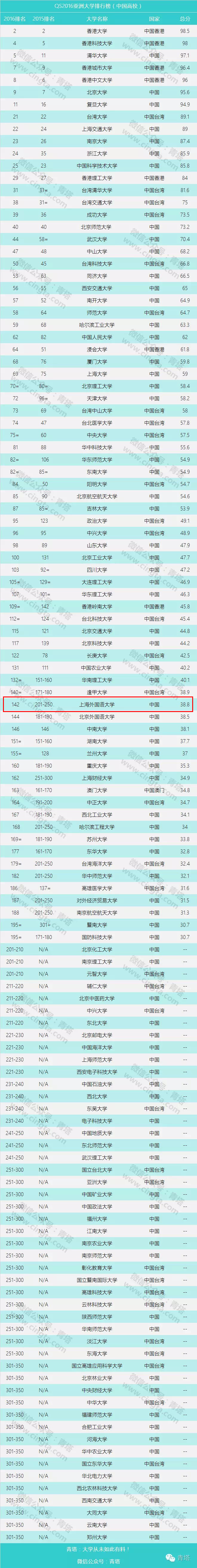 日前,全球高等教育分析机构 Quacquarelli Symonds (QS) 全球教育集团在其官方网站发布2016年“QS亚洲大学排名”(QS University Rankings: Asia 2016)。