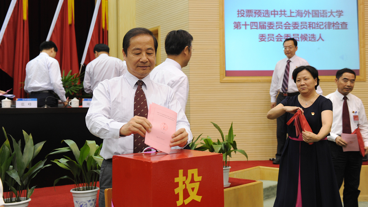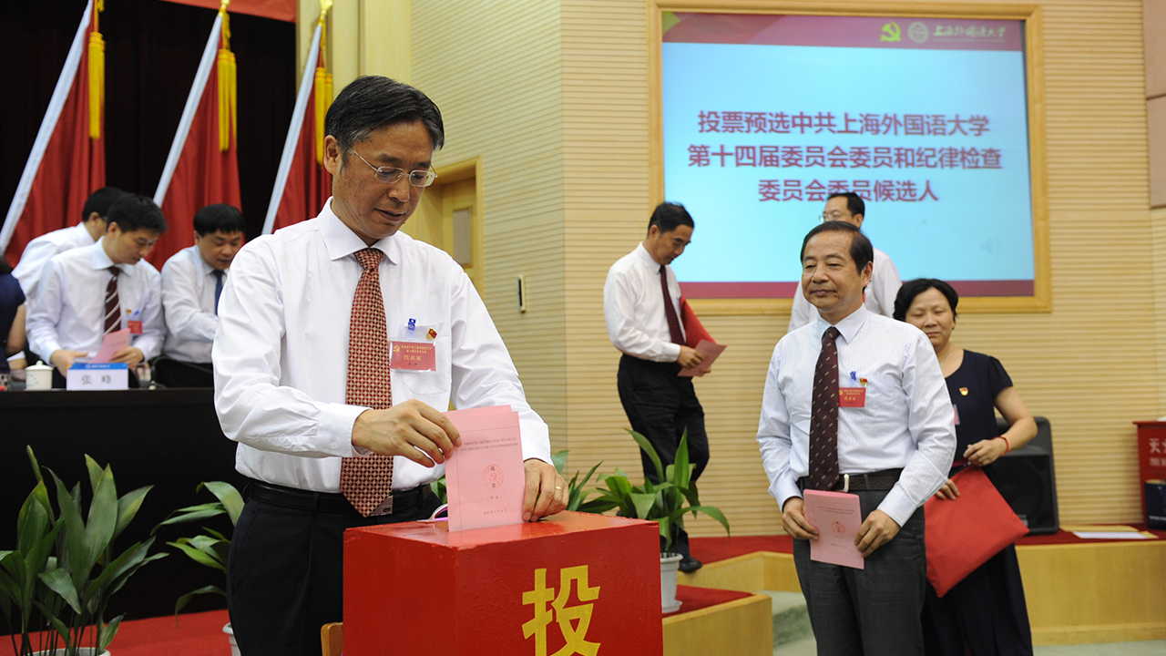 在总监票人李仁东同志的主持下,预备会议投票选举产生了上海外国语大学第十四届党委委员候选人和第十四届纪委委员候选人。