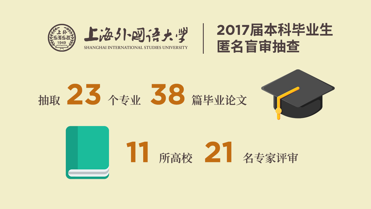 为了监督本科生论文写作质量,上外今年随机抽取23个专业的38篇毕业论文参加校内外专家评审,共有来自11所全国知名高校的21名专家参与评审。