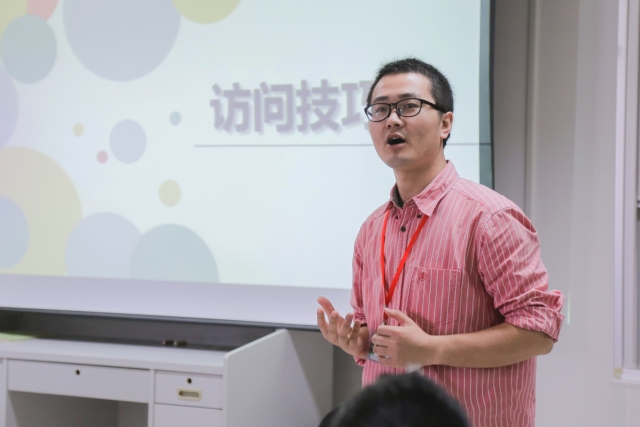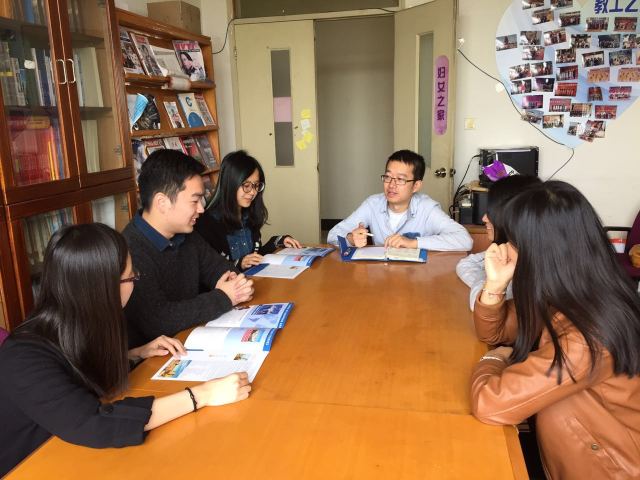 2017年上海市优秀共青团干部、西方语系辅导员景飞鹏与学生交流谈心