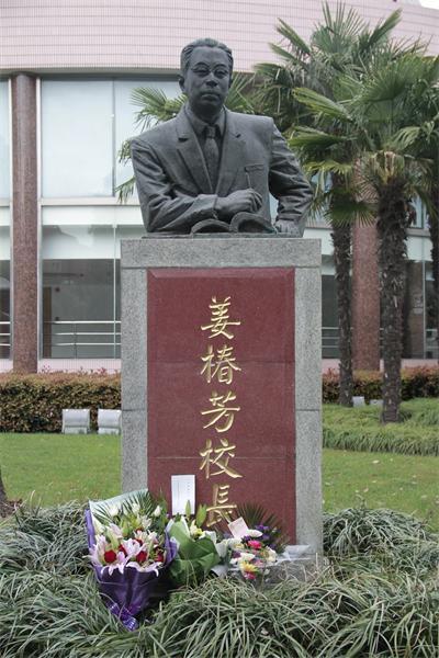 上外校园中的姜椿芳雕像,是上外人对这位年轻校长的纪念