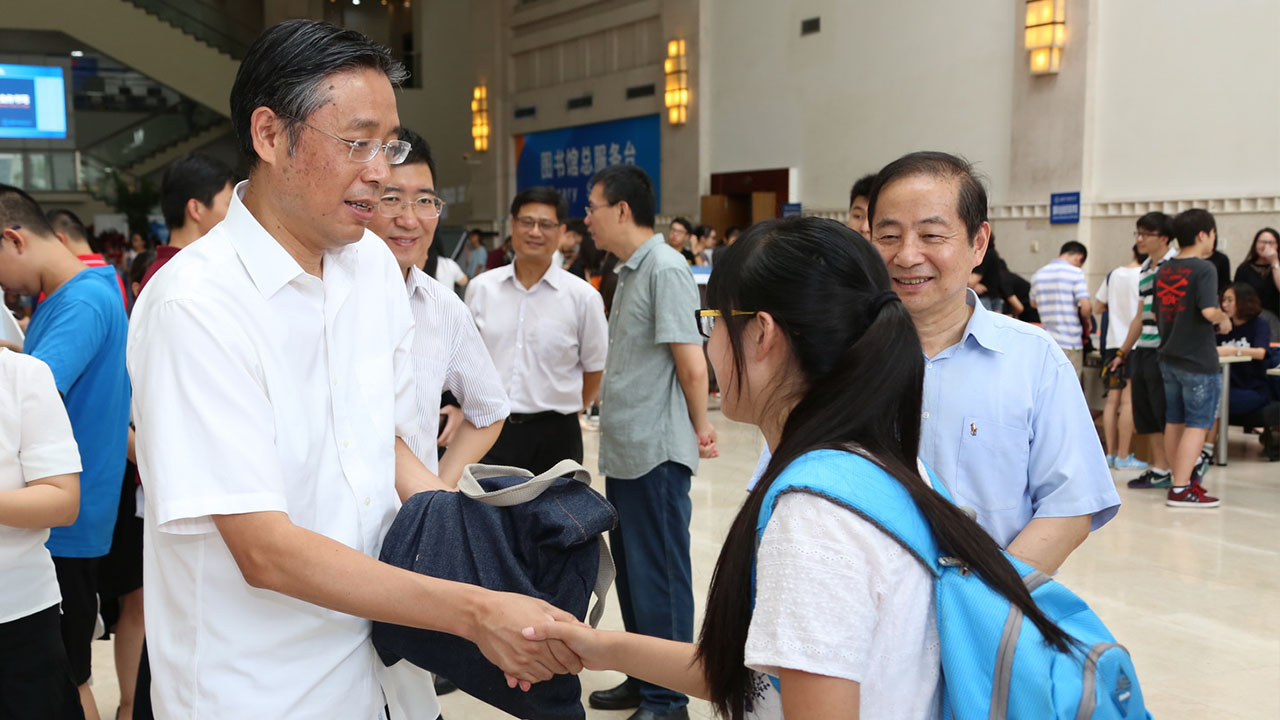 在迎新报到现场,校领导仔细询问各院系新生报到情况,与新生进行交流和互动。嘱咐各院系和相关职能部门务必把工作做细做实,确保新生特别是困难家庭学生按时顺利入学报到,做好新生入学教育。