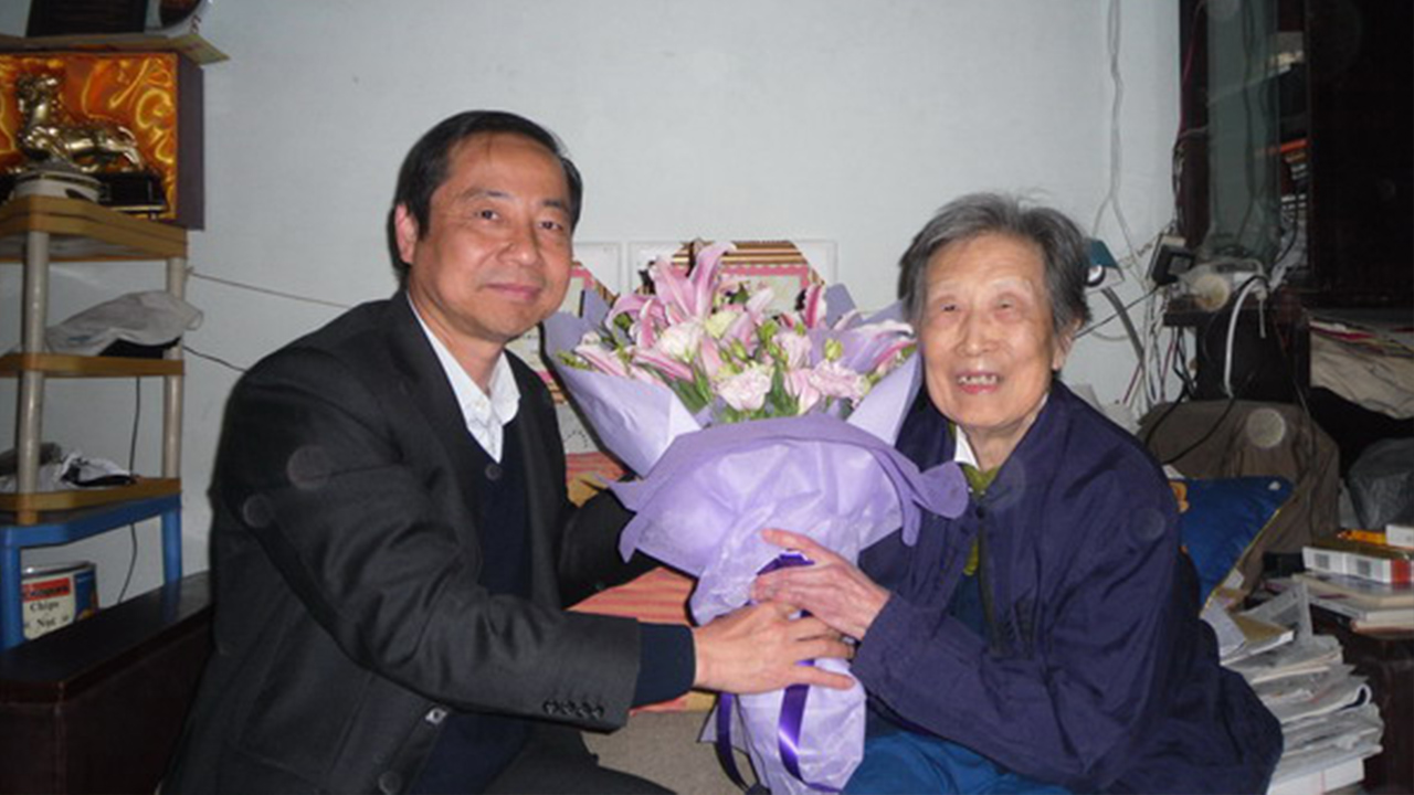 2010年11月,校长曹德明在李观仪先生家中看望,询问健康状况。 【摄影 | 】