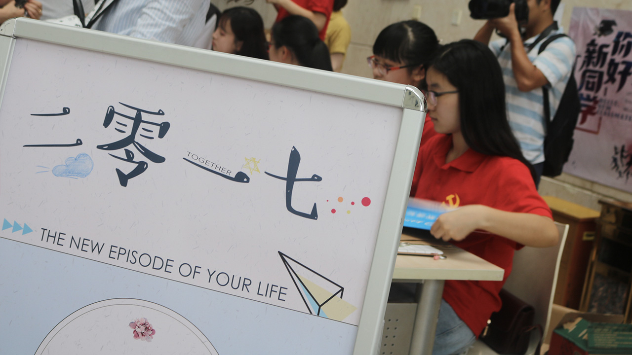 在迎新现场,除了报到材料之外,各个院系都为新生准备了专属的纪念品和入学教育装备,从书签、院徽、明信片、手袋、T恤等,独具匠心,各具特色。不少院系还推出了详细生动的新生指南系列手册,为2017级新生提供指导。