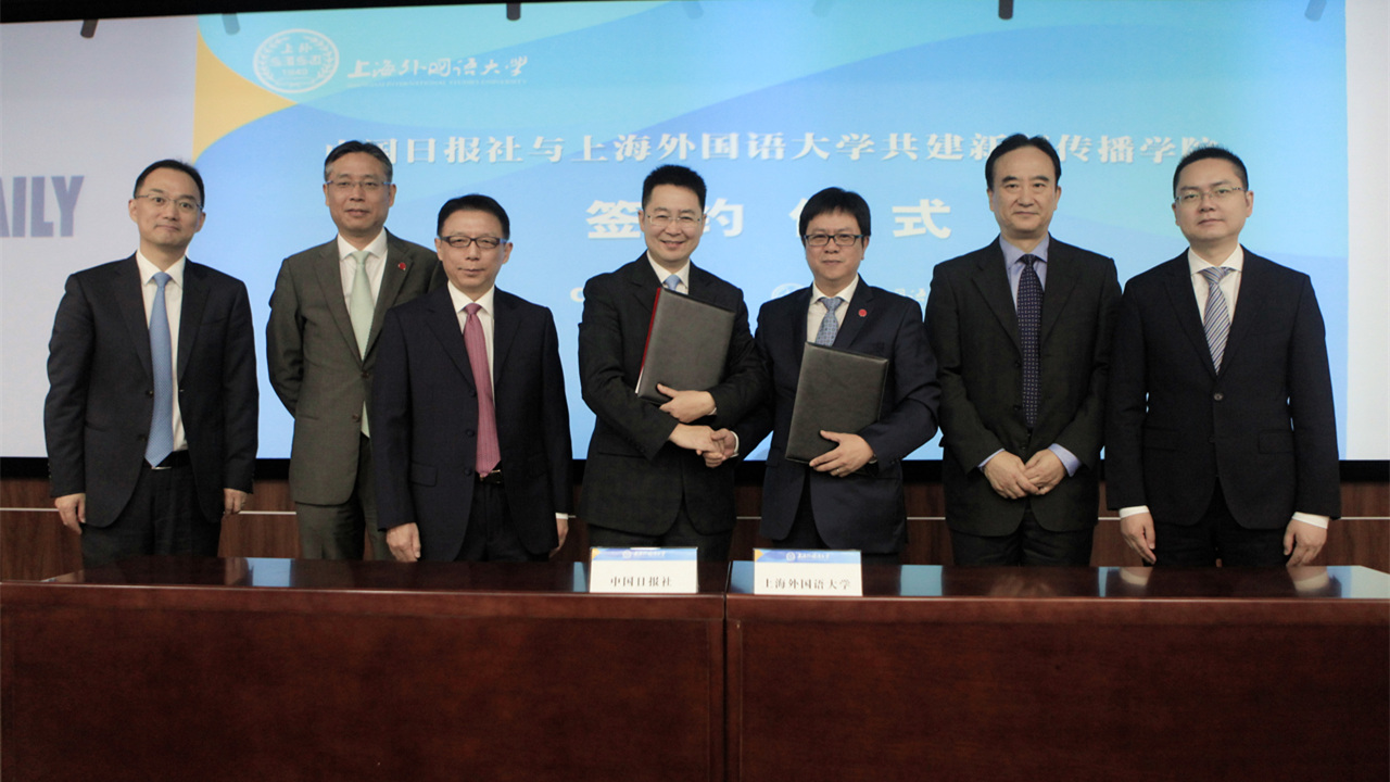 9月13日,中国日报社与上海外国语大学在上海签署共建新闻传播学院协议。中国日报社总编辑周树春、副总编辑曲莹璞,上海外国语大学党委书记姜锋、校长李岩松参加了签约仪式,上海市政府新闻办公室主任徐威、上海市教育委员会巡视员蒋红、上海市松江区委常委、宣传部部长赵勇共同出席了仪式。
